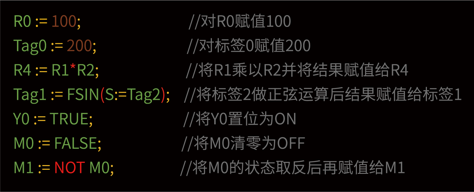 賦值語句使用形式如下,其中“:=”為賦值操作符,且要用“;”結(jié)尾。